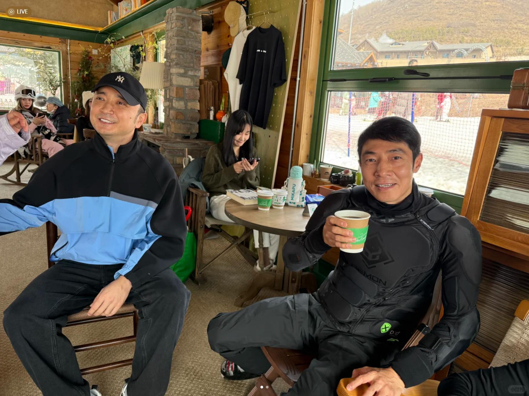 不过,小尼并没有耽于美食,很快网友们就偶遇他和撒贝宁一家结伴滑雪。